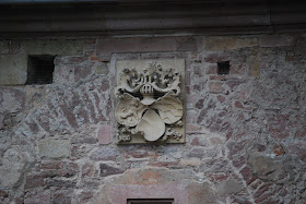 For our next look at the displays of the arms of the Palatinate (sometimes called the Rhenish Palatinate) (Rheinland-Pfalz) and Bavaria (Bayern), we find several with the arms on two separate shields, accompanied by a third shield (which we would from experience expect to be the arms of the Archidapifer or chief food steward) but which in these instances is left either plain (in one instance) or diapered* in the others.