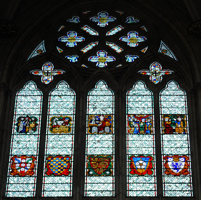 Moving along, we come to our next window in York Minster. I've not paired this one with the next one in line, because some of the arms are newer as opposed to the historical ones with arms we have seen elsewhere in the Minster, and so I have included more explanatory information.